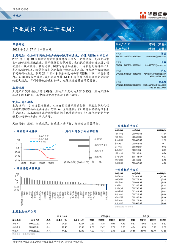 【华泰证券】【20210627】房地产行业周报(第二十五周)-16页