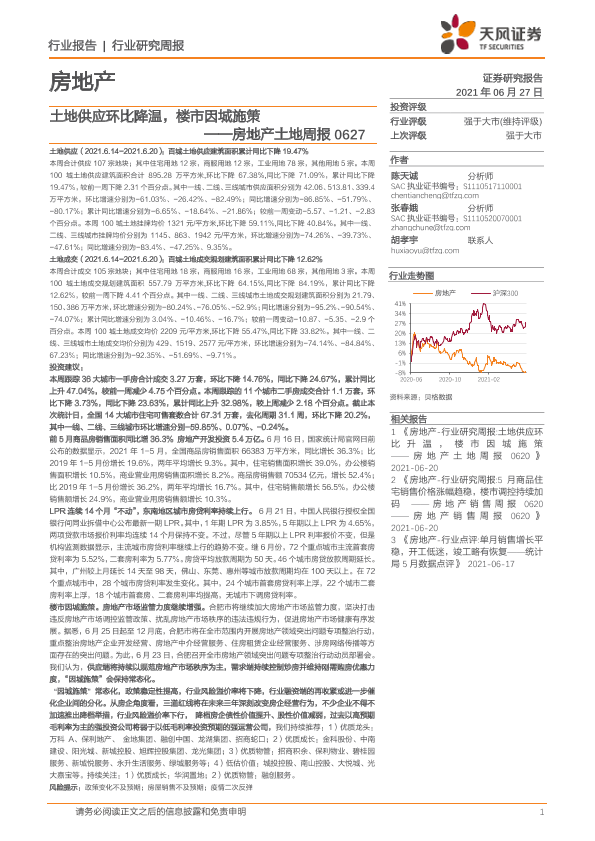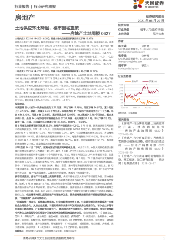 【天风证券】【20210627】房地产土地周报:土地供应环比降温,楼市因城施策-9页