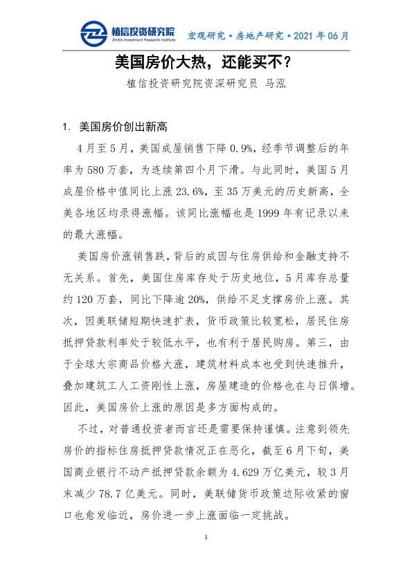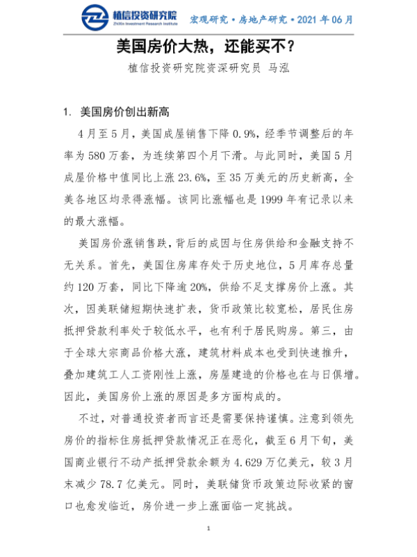 【植信投资研究院】【202106】美国房价大热,还能买不?-4页