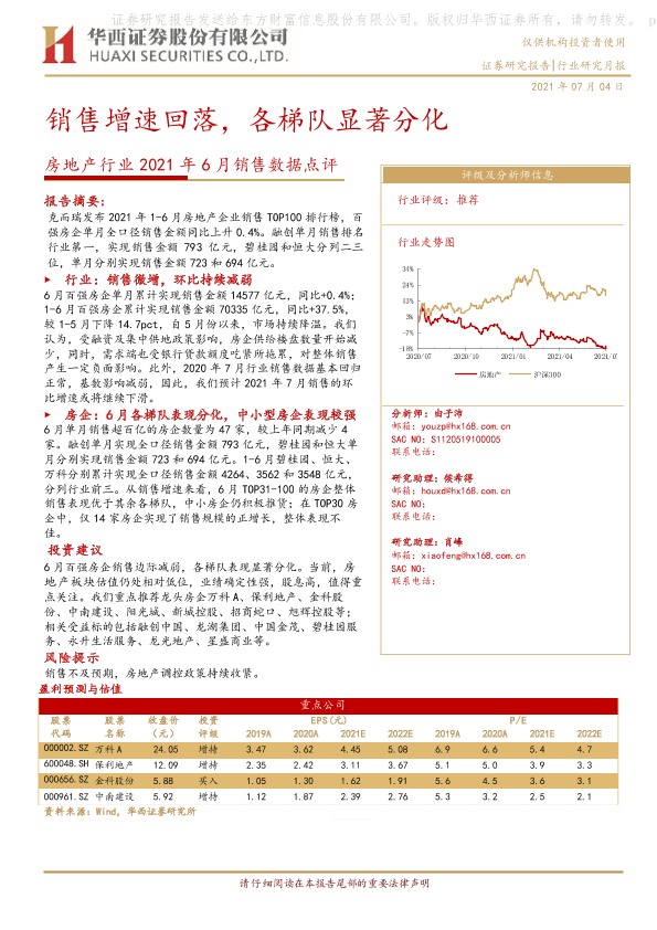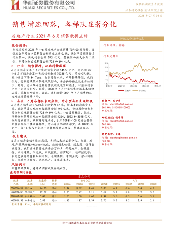 【华西证券】【20210704】2021年6月销售数据点评:销售增速回落,各梯队显著分化-10页