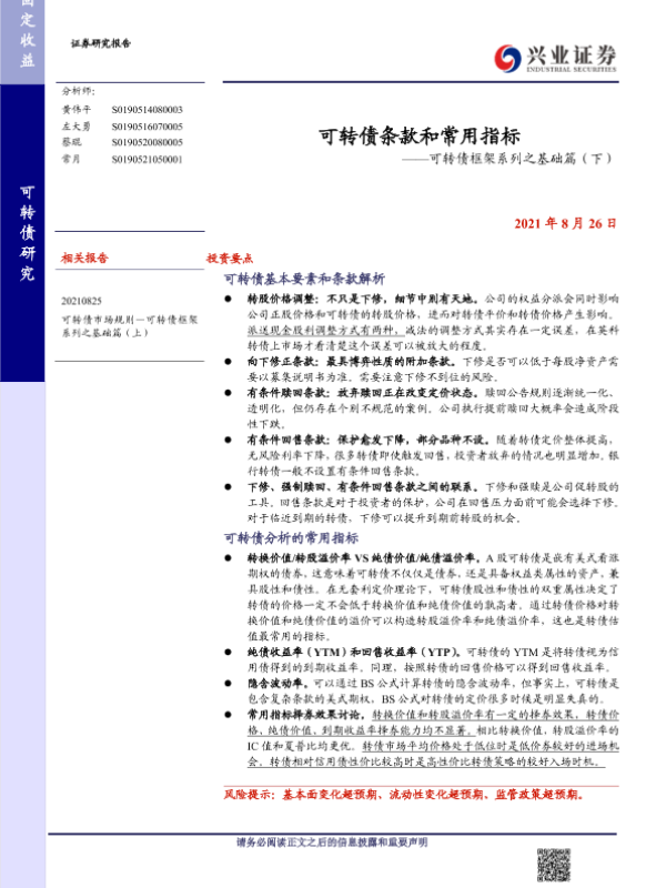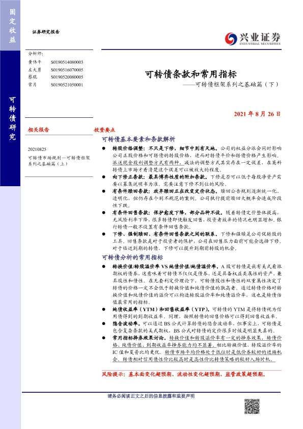 【兴业证券】【20210826】可转债框架系列之基础篇(下):可转债条款和常用指标-15页