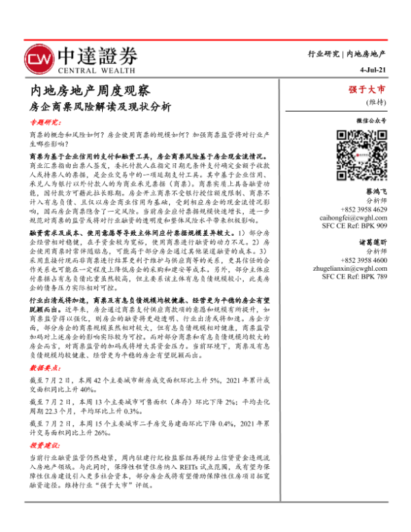 【中达证券】【20210704】内地房地产周度观察:房企商票风险解读及现状分析-19页