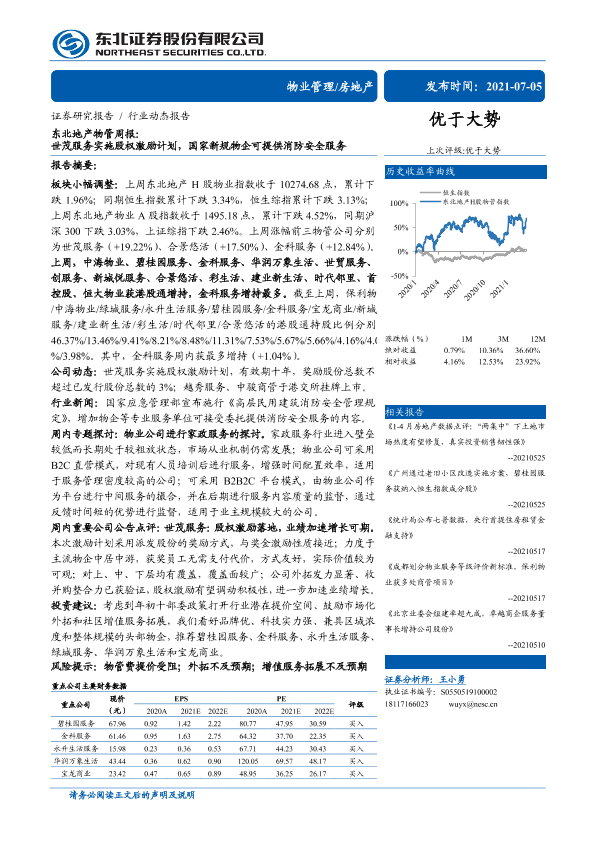 【东北证券】【20210705】东北地产物管周报:世茂服务实施股权激励计划,国家新规物企可提供消防安全服务-14页