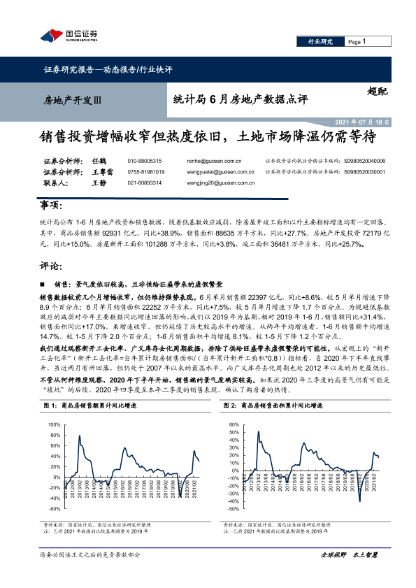 【国信证券】【20210716】统计局6月房地产数据点评:销售投资增幅收窄但热度依旧,土地市场降温仍需等待-8页