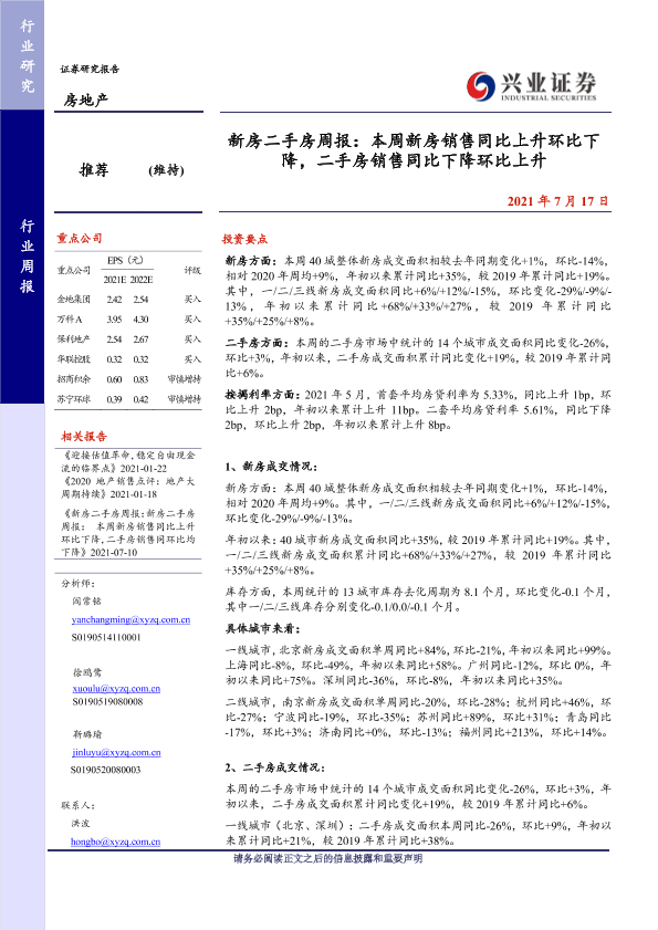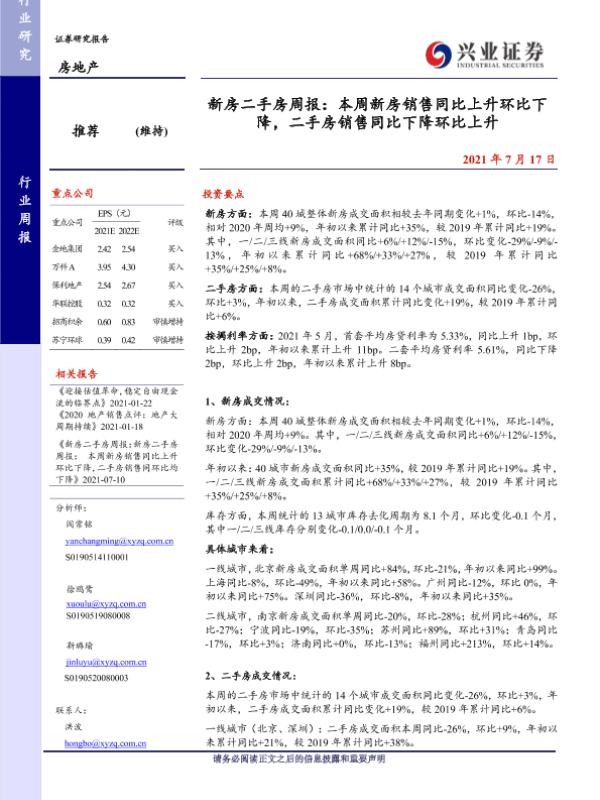 【兴业证券】【20210717】新房二手房周报:本周新房销售同比上升环比下降,二手房销售同比下降环比上升-28页