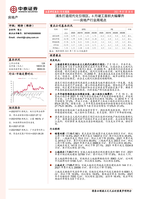 【中泰证券】【20210718】浦东打造现代化引领区,6月竣工面积大幅攀升-12页