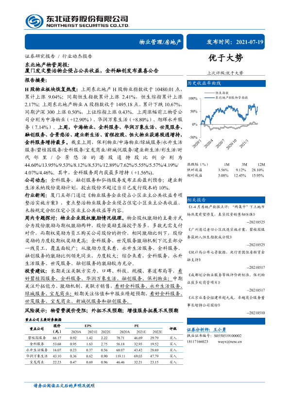 【东北证券】【20210719】东北地产物管周报:厦门发文整治物企侵占公共收益,金科融创发布盈喜公告-15页