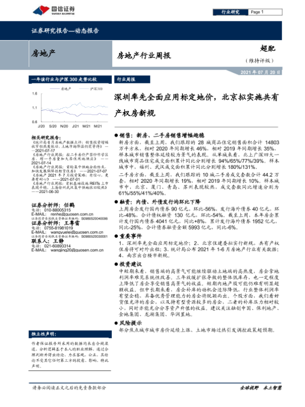 【国信证券】【20210720】房地产行业周报:深圳率先全面应用标定地价,北京拟实施共有产权房新规-9页