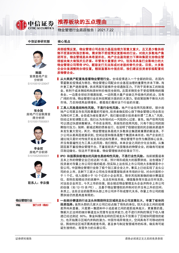 【中信证券】【20210722】物业管理行业跟踪报告:推荐板块的五点理由-3页