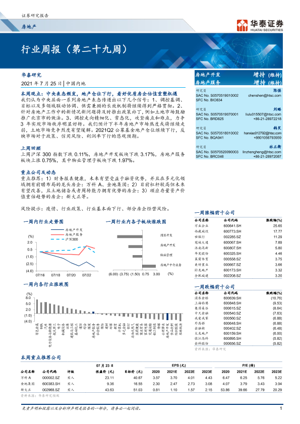 【华泰证券】【20210725】房地产行业周报(第二十九周)-15页