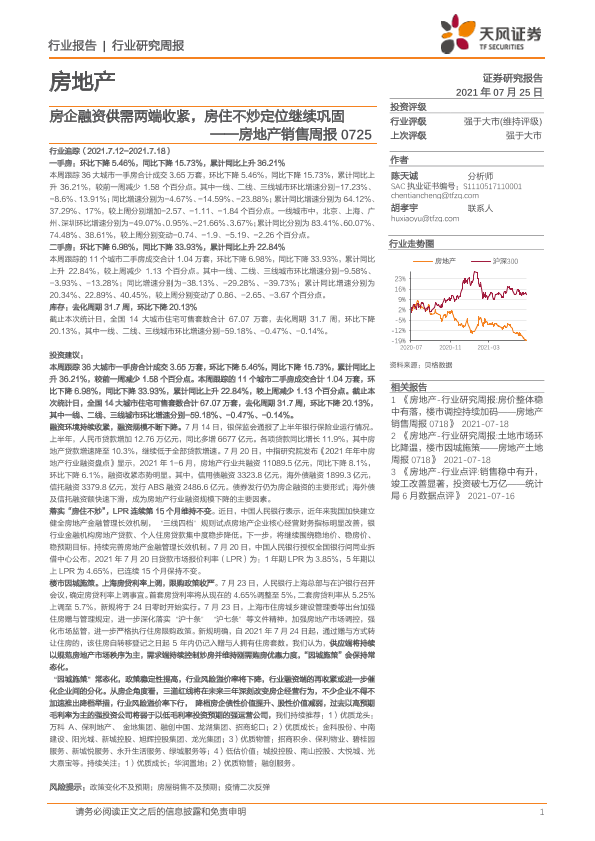 【天风证券】【20210725】房企融资供需两端收紧,房住不炒定位继续巩固-14页