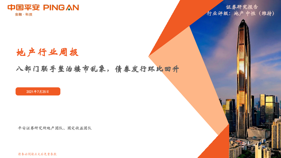 【平安证券】【20210725】地产行业周报:八部门联手整治楼市乱象,债券发行环比回升-21页