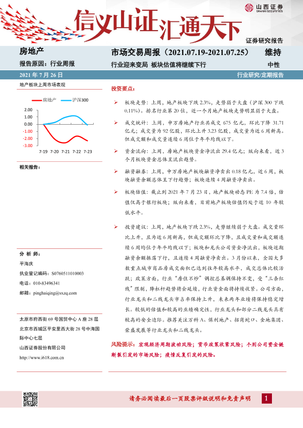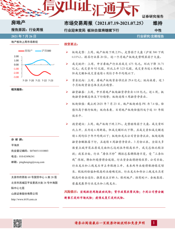 【山西证券】【20210726】市场交易周报-行业迎来变局 板块估值将继续下行-20页