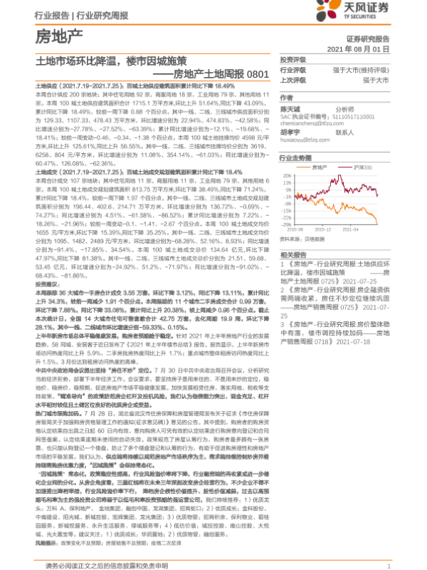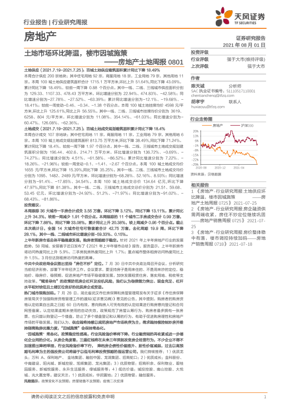 【天风证券】【20210801】房地产土地周报:土地市场环比降温,楼市因城施策-9页