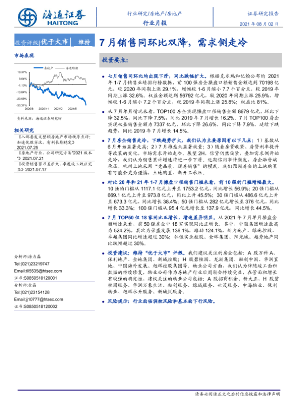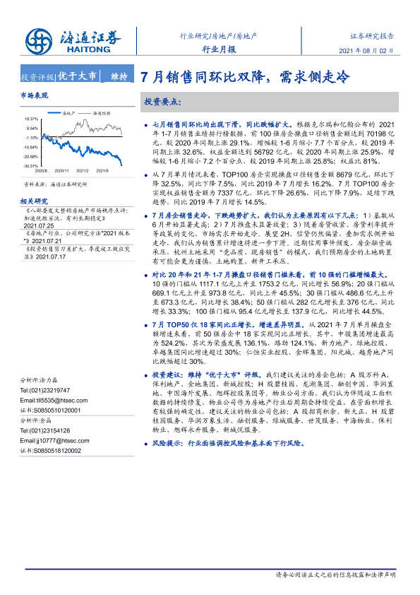 【海通证券】【20210802】房地产行业月报:7月销售同环比双降,需求侧走冷-11页