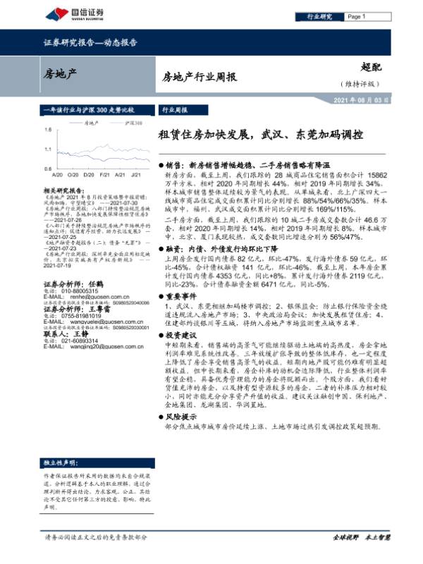 【国信证券】【20210803】房地产行业周报:租赁住房加快发展,武汉、东莞加码调控-9页