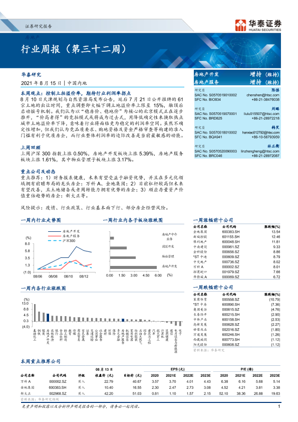 【华泰证券】【20210815】房地产行业周报(第三十二周)-15页