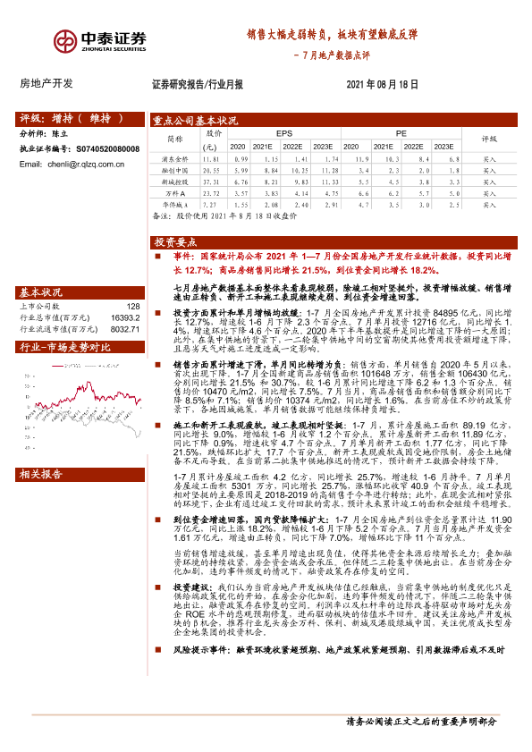 【中泰证券】【20210818】7月地产数据点评:销售大幅走弱转负,板块有望触底反弹-9页