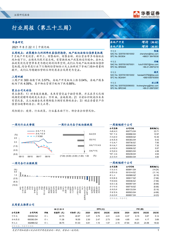 【华泰证券】【20210822】房地产开发行业周报(第三十三周)-15页