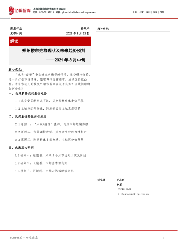【上海亿翰商务咨询股份有限公司】【20210823】2021年8月中旬郑州楼市走势现状及未来趋势预判-11页