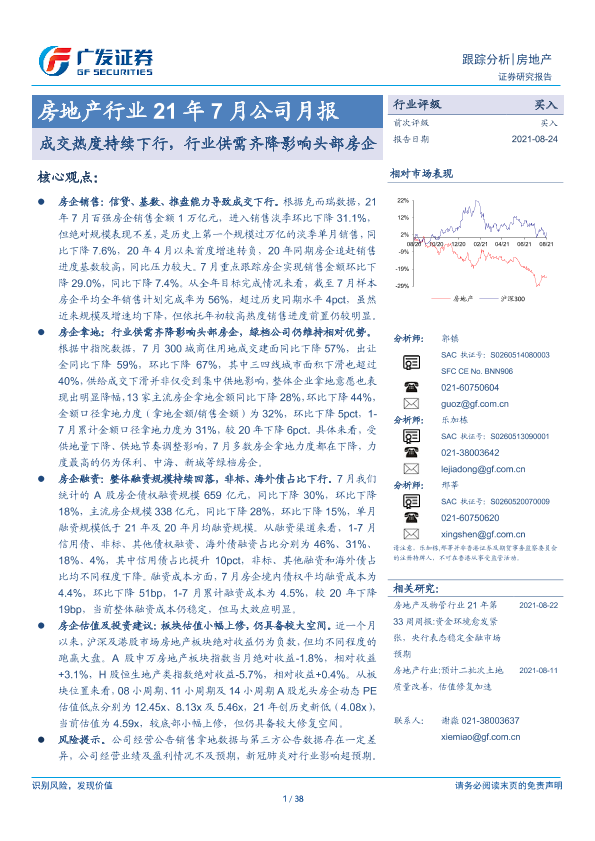 【广发证券】【20210824】21年7月公司月报:成交热度持续下行,行业供需齐降影响头部房企-38页