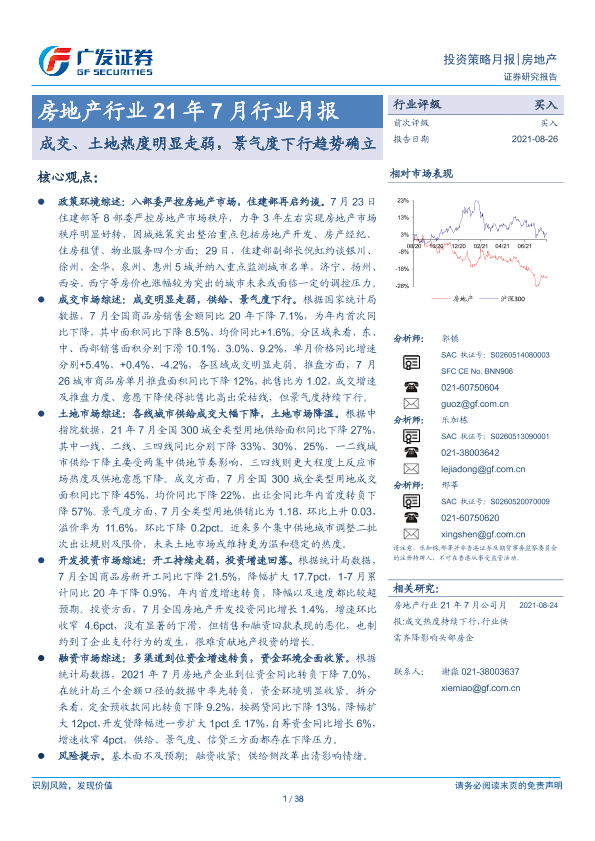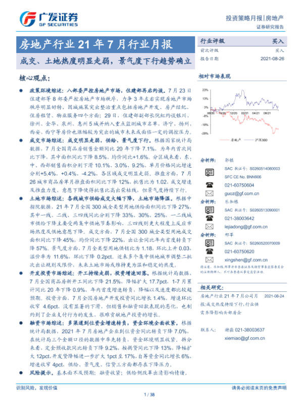 【广发证券】【20210826】21年7月行业月报:成交、土地热度明显走弱,景气度下行趋势确立-38页
