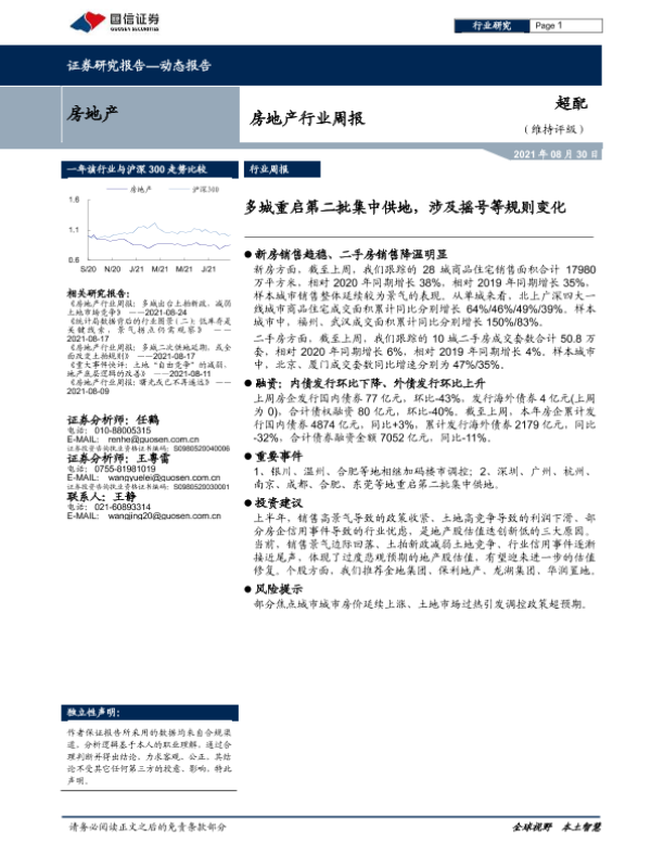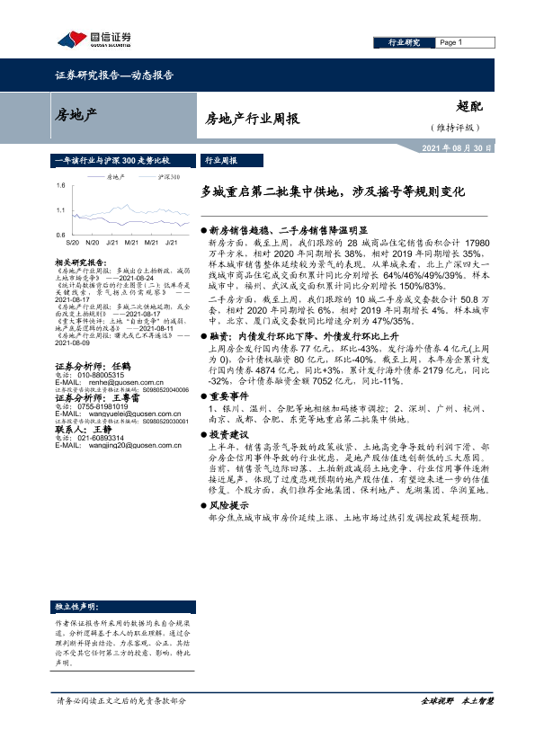 【国信证券】【20210830】房地产行业周报:多城重启第二批集中供地,涉及摇号等规则变化-8页