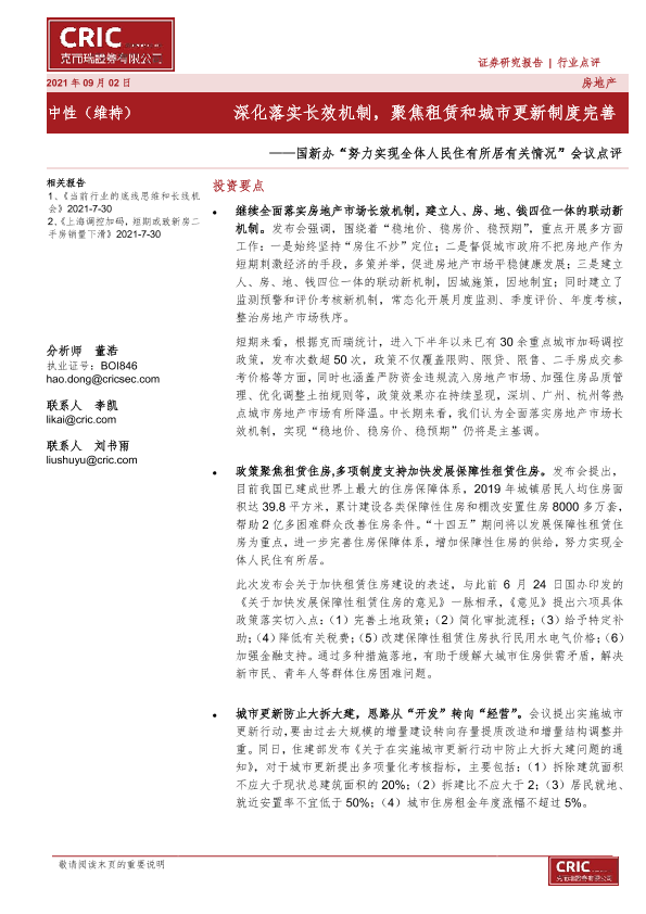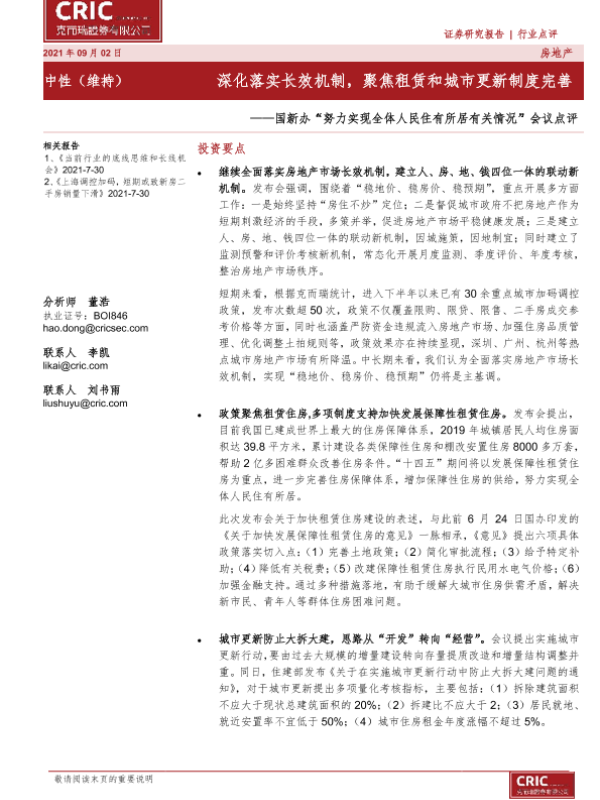 【克而瑞证券】【20210902】努力实现全体人民住有所居有关情况会议点评-3页