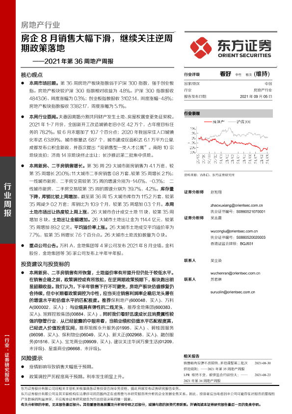 【东方证券】【20210905】2021年第36周地产周报:房企8月销售大幅下滑,继续关注逆周期政策落地-17页