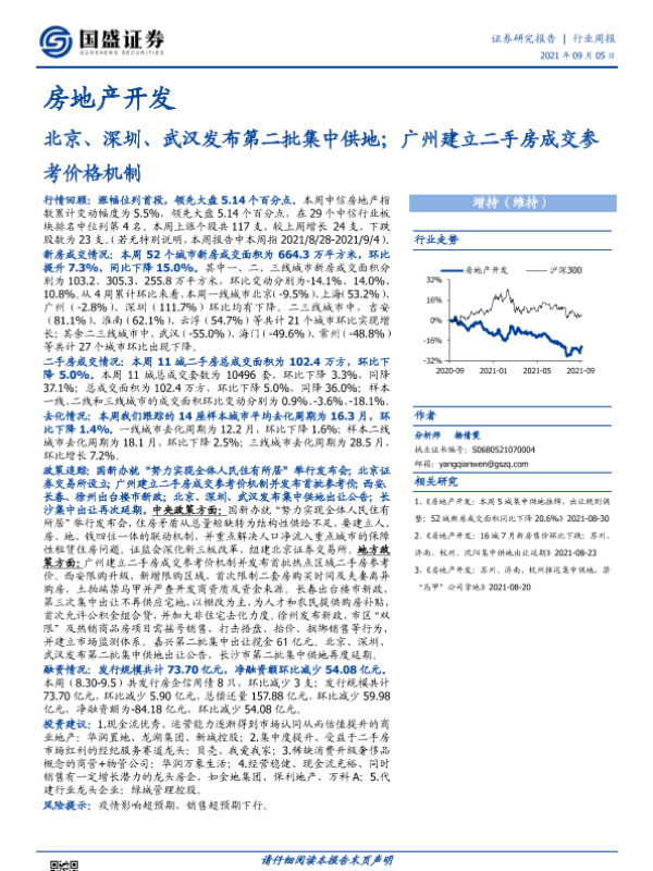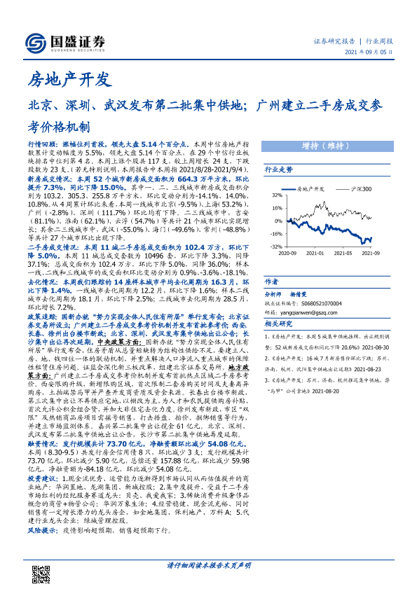 【国盛证券】【20210905】房地产开发行业周报:北京、深圳、武汉发布第二批集中供地;广州建立二手房成交参考价格机制-25页