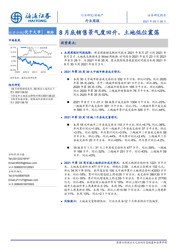 【海通证券】【20210906】8月底销售景气度回升,土地低位震荡-6页