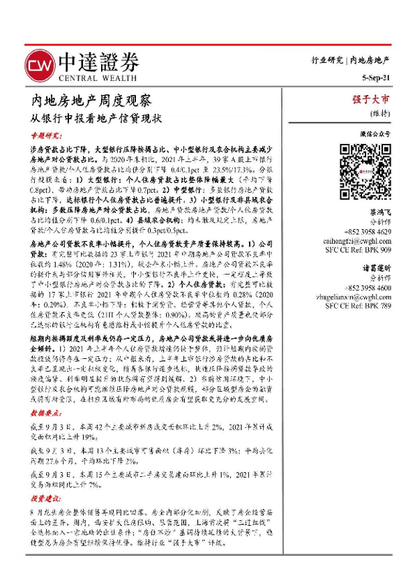 【中达证券】【20210905】内地房地产周度观察:从银行中报看地产信贷现状-16页