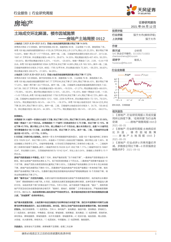 【天风证券】【20210912】土地成交环比降温,楼市因城施策-9页