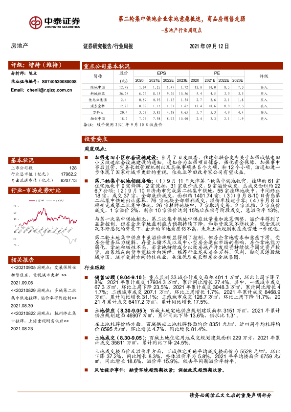 【中泰证券】【20210912】第二轮集中供地企业拿地意愿低迷,商品房销售走弱-11页
