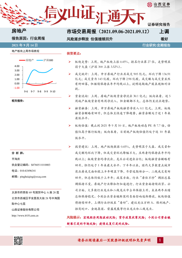 【山西证券】【20210914】房地产市场交易周报:风险逐步释放 估值继续回升-20页