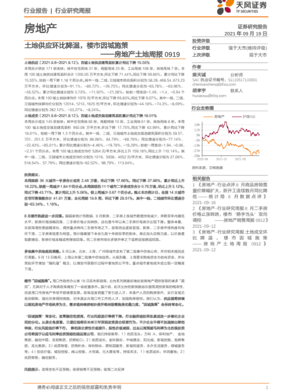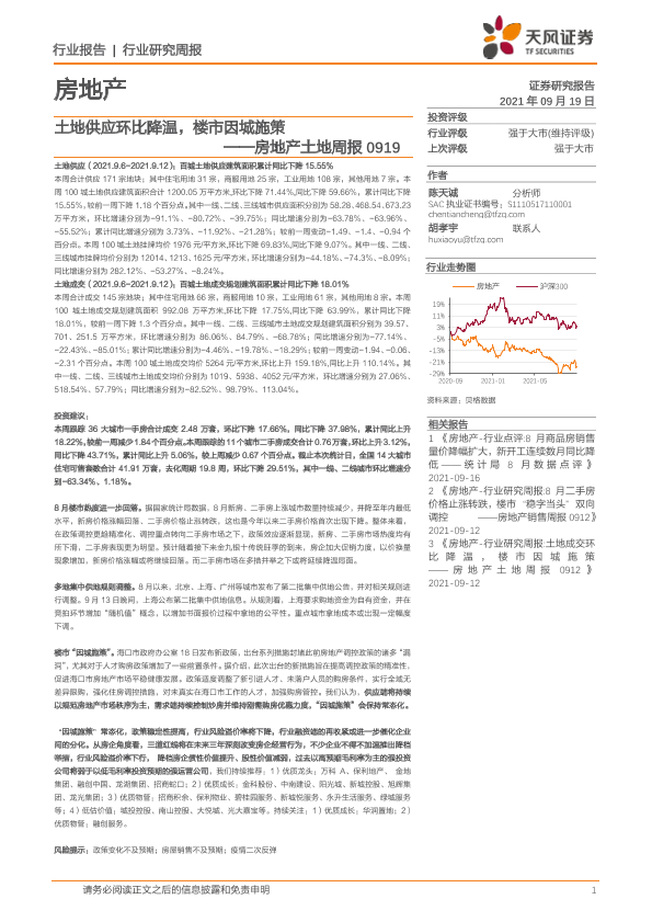 【天风证券】【20210919】土地供应环比降温,楼市因城施策-8页