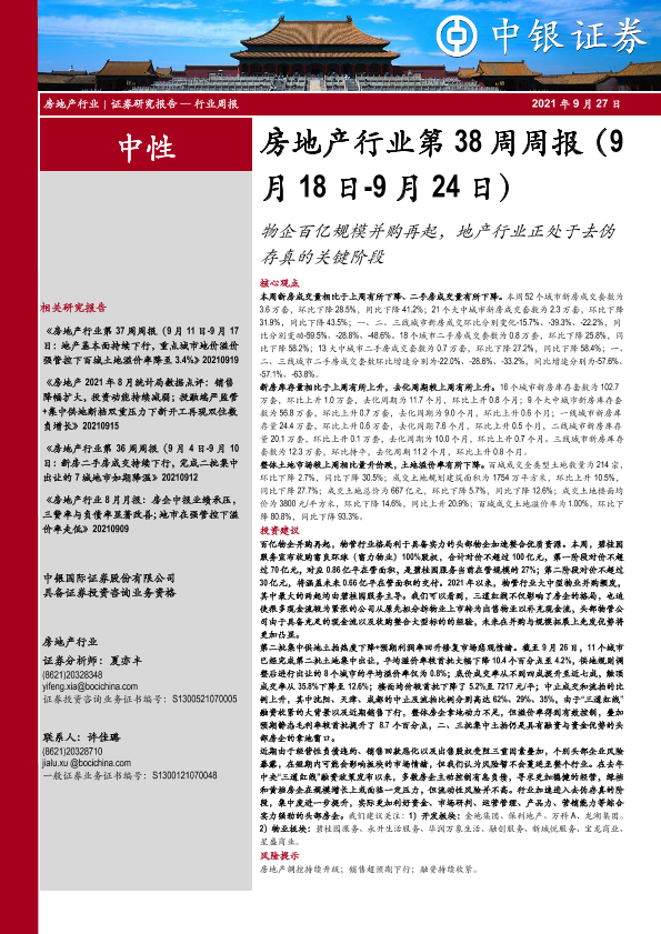 【中银证券】【20210927】房地产行业第38周周报:物企百亿规模并购再起,地产行业正处于去伪存真的关键阶段-25页