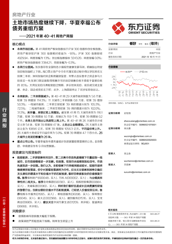 【东方证券】【20211011】2021年第40-41周地产周报:土地市场热度继续下降,华夏幸福公布债务重组方案-18页