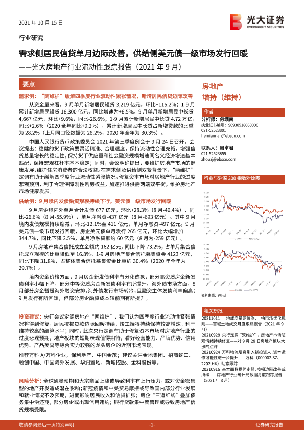 【光大证券】【20211015】光大房地产行业流动性跟踪报告:需求侧居民信贷单月边际改善,供给侧美元债一级市场发行回暖-10页