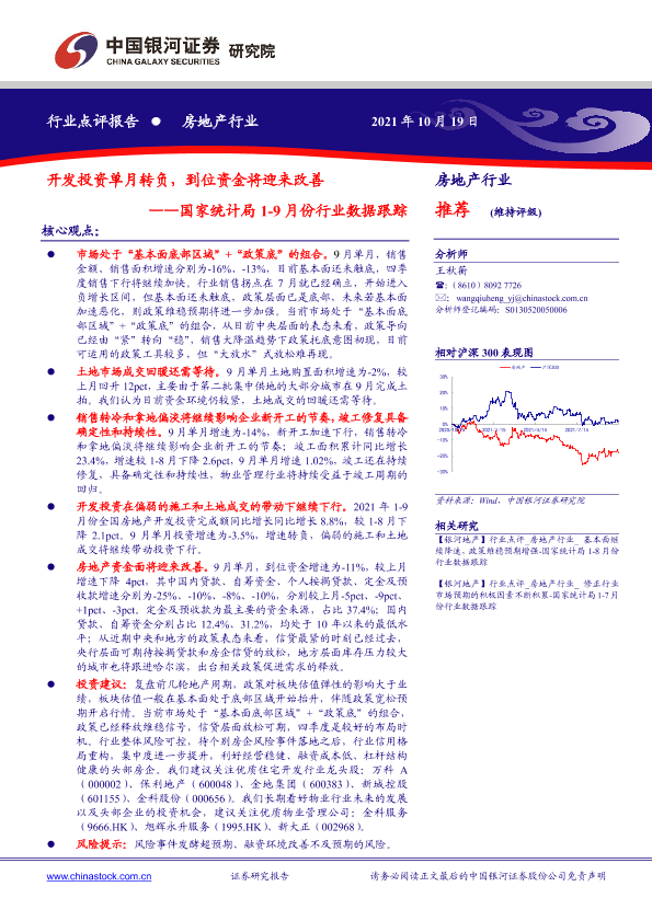 【银河证券】【20211019】开发投资单月转负,到位资金将迎来改善-8页
