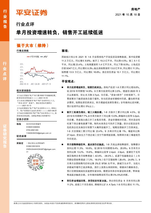 【平安证券】【20211018】单月投资增速转负,销售开工延续低迷-6页