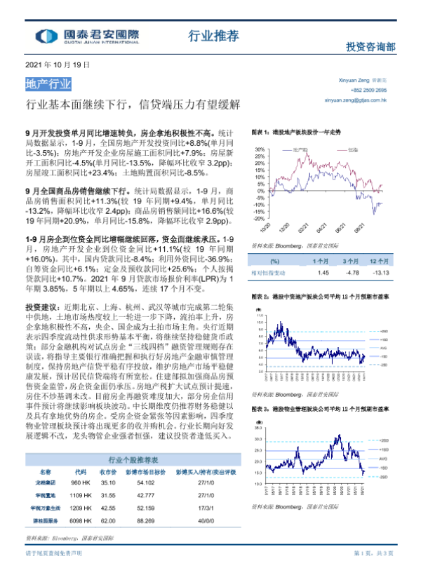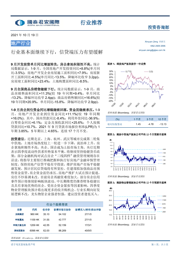 【国泰君安证券】【20211019】地产行业:行业基本面继续下行,信贷端压力有望缓解-3页
