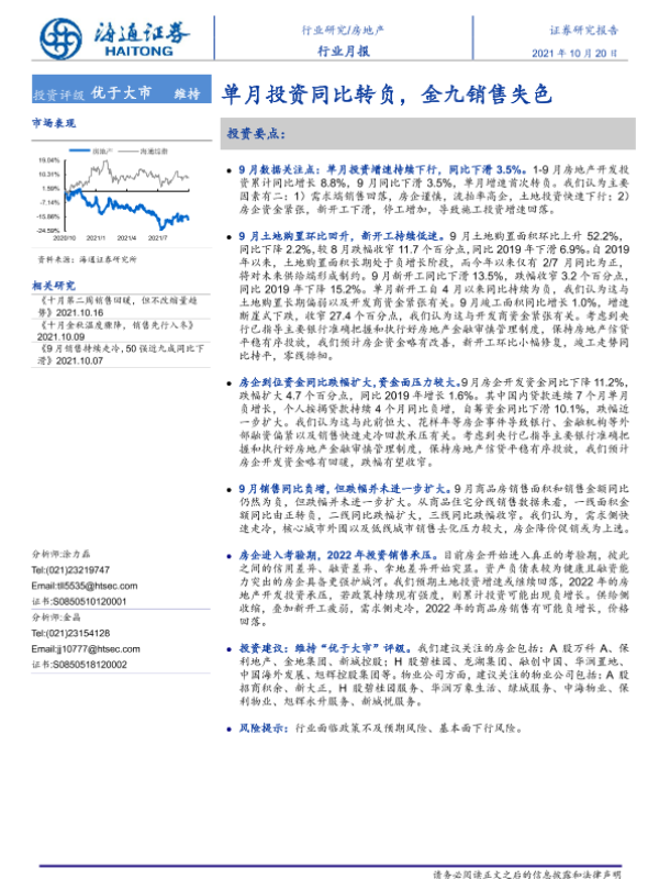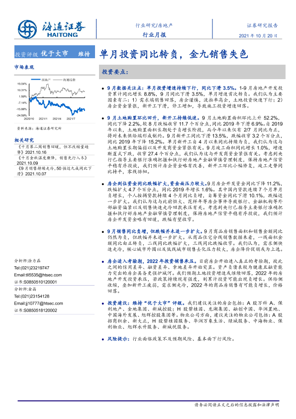 【海通证券】【20211020】单月投资同比转负,金九销售失色-12页