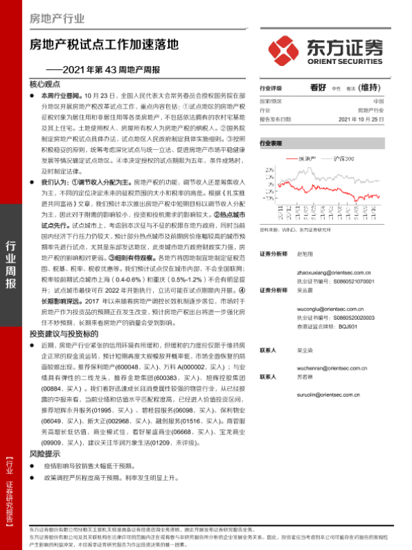 【东方证券】【20211025】2021年第43周地产周报:房地产税试点工作加速落地-17页