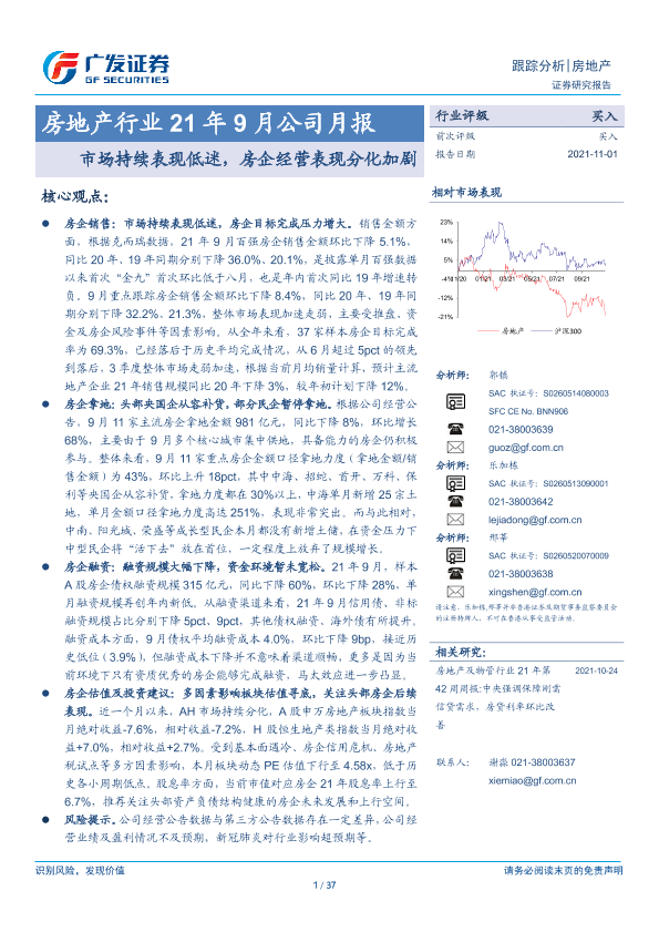 【广发证券】【20211101】21年9月公司月报:市场持续表现低迷,房企经营表现分化加剧-37页