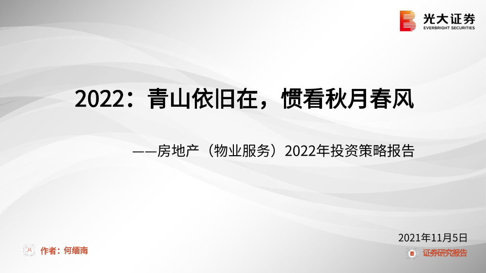 【光大证券】【20211105】2022:青山依旧在,惯看秋月春风——房地产(物业服务)2022年投资策略报告-25页