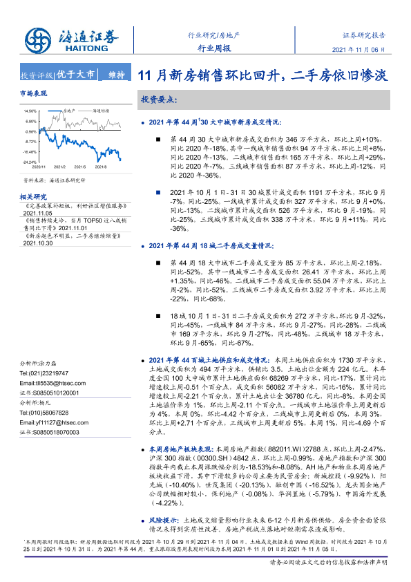 【海通证券】【20211106】11月新房销售环比回升,二手房依旧惨淡-6页