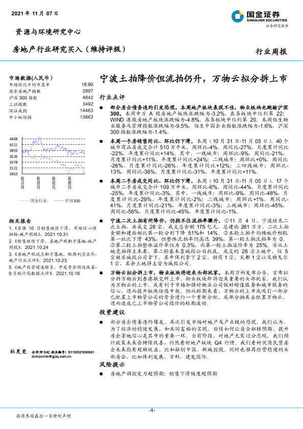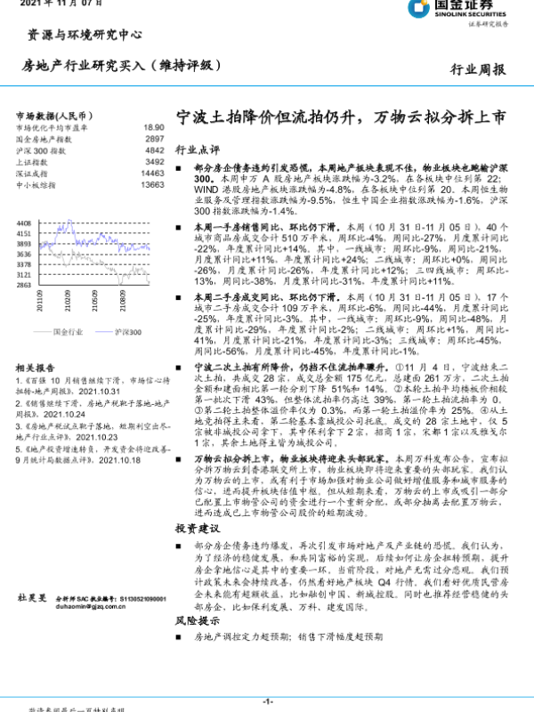 【国金证券】【20211107】房地产行业周报:宁波土拍降价但流拍仍升,万物云拟分拆上市-17页