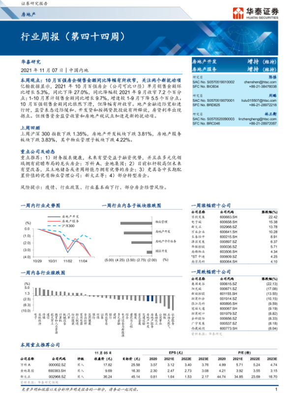 【华泰证券】【20211107】房地产行业周报(第四十四周)-15页