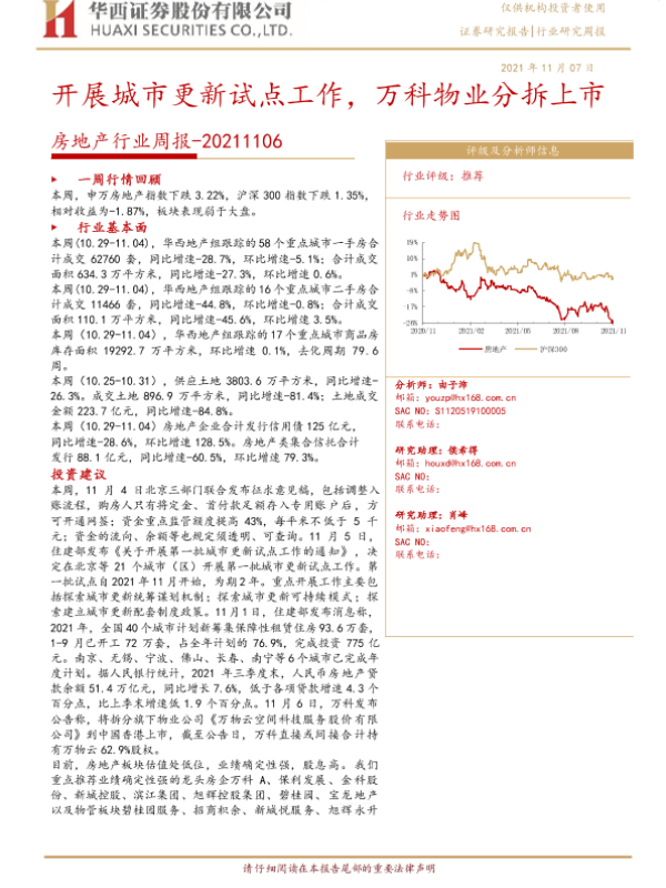 【华西证券】【20211107】开展城市更新试点工作,万科物业分拆上市-28页